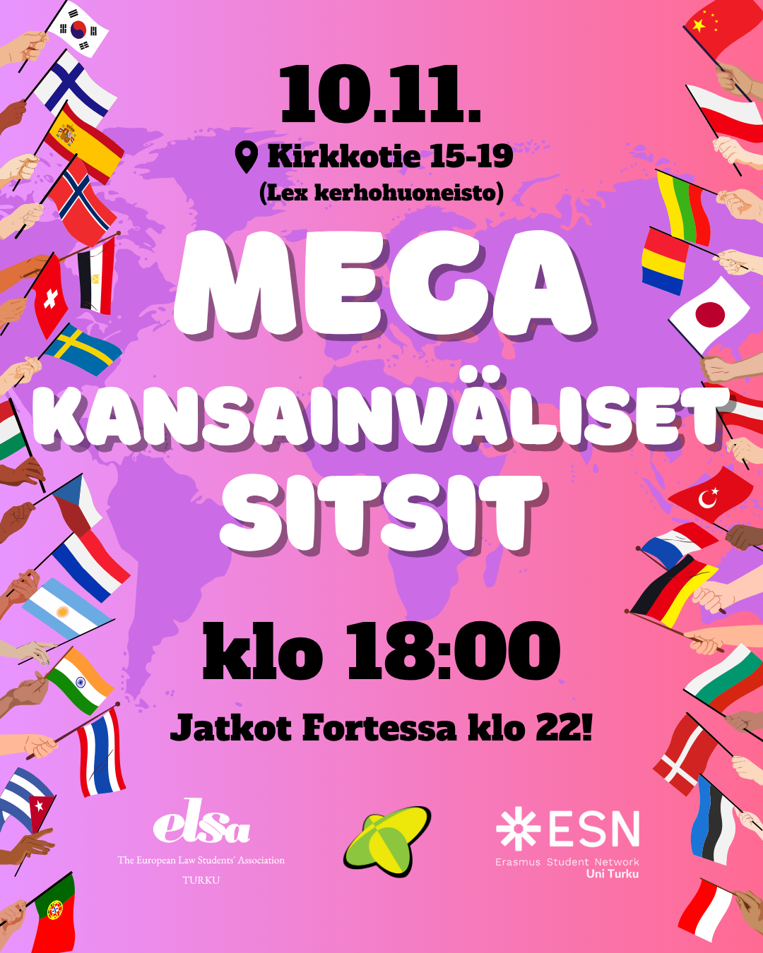 Oletko koskaan halunnut sitsata kansainvälisesti? 🤔 No, nyt on mahdollisuus risteytyä myös vaihto-opiskelijoiden kanssa! 🗺️ Hybridi järjestää yhteistyössä ESN Uni Turun ja Elsa Turun kanssa yhteiset kansainväliset MEGA sitsit 10.11. klo 18! Hybridin osalta paikkoja on vain rajoitettu määrä, joten ilmoittauduthan nopeasti! Lipunmyynti tapahtumaan suoritetaan Kidessä ja lipunmyynti on jo auki (HOX! Paikkoja enää muutamia jäljellä, ole siis nopea!) ❗️