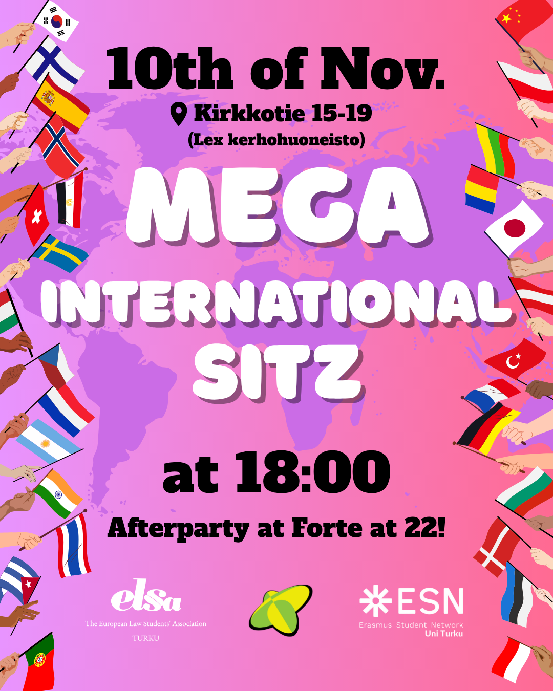 Have you ever wanted to attend a mixed Finnish and English speaking student event? 🤔 Well now's your chance to integrate! 🗺️ Hybridi is organising mega international sitz on 10.11. at 18:00 o'clock together with ESN Uni Turku and Elsa Turku! On behalf of Hybridi there will be only few spaces so be quick to catch yours! The ticket will be purchasable from Kide and the ticket sell has opened (NOTE! There's only a couple of spots left, so be quick!) ❗️