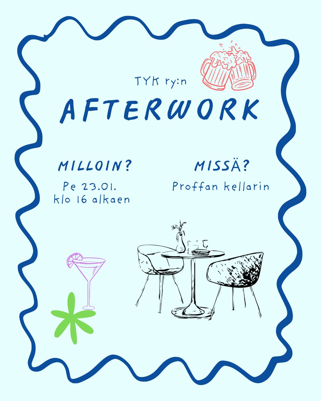 Afterwork pidetään perjantaina 23.1. klo 16 alkaen Proffan Kellarissa,