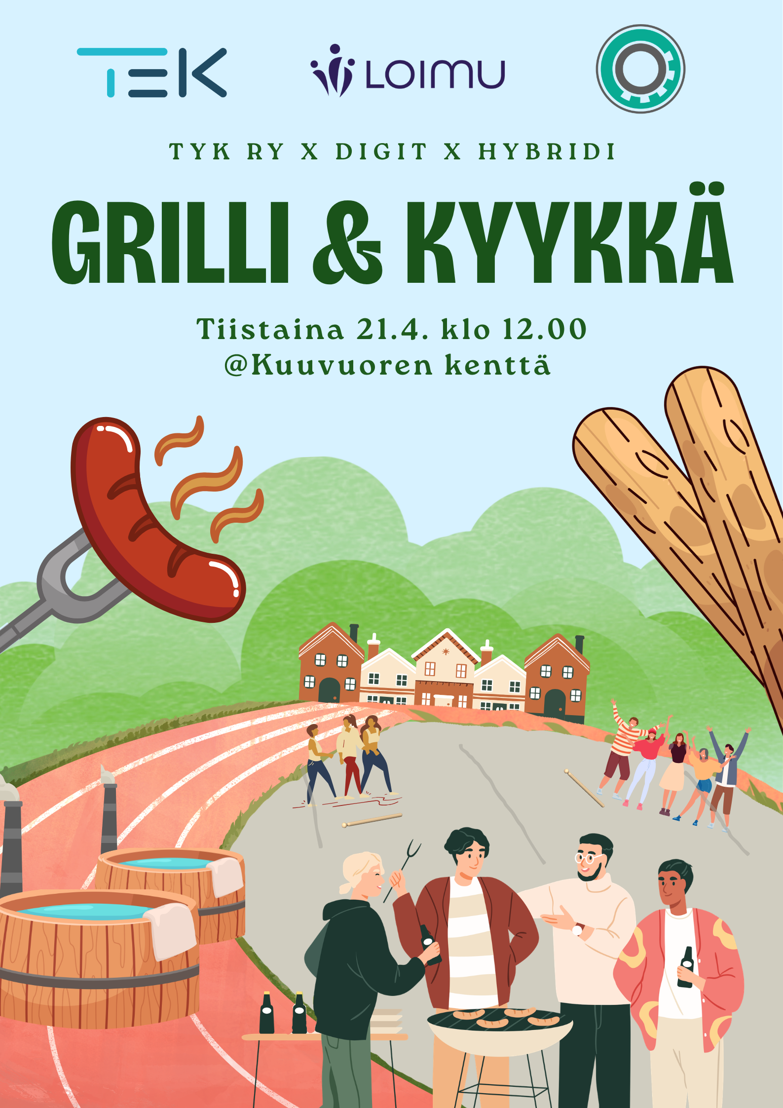 Paikan päällä on grilliherkkujen ja kyykkäkentän lisäksi myös palju ja sauna. Ota siis mukaan kamut ja uimakamat, ja suuntaa Kuuvuoren kentälle rentoutumaan ja pelailemaan tiistaina 21.4. klo 12 eteenpäin. Tapahtumaa sponsoroi TEK, Technica ja Loimu.💛